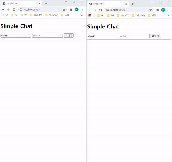 UI는... 말을 아끼자... 일단 아래의 코드를 작성 후 실행하면 이렇게 채팅이 최종적으로 구현된다. 여기를 눌러 확인해보자.
